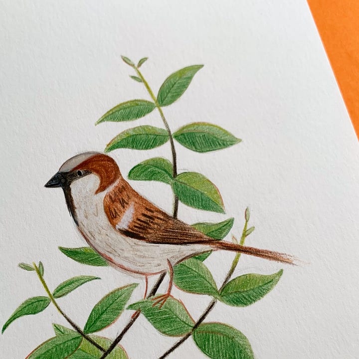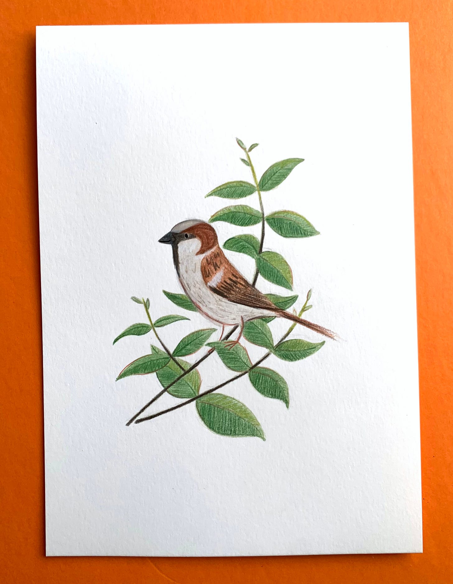 One such project happened recently when a lovely lady requested a commissioned illustration of a house sparrow. Happily, she was able to wait until I had a gap in my schedule and I thought I’d share with you the process I went through to make it happen.